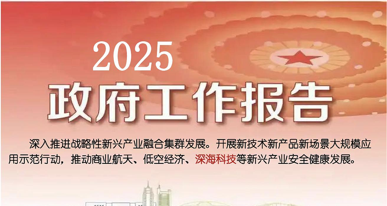 2025年《政府工作报告》首次将“深海科技”纳入其中,明确提出开展新技术新产品新场景大规模应用示范行动,推动商业航天、低空经济、深海科技等新兴产业安全健康发展。这一决策,标志着深海科技正式上升为国家战略重点发展方向。它不仅彰显了国家对深海科技发展的高度重视,也为相关产业带来了前所未有的发展机遇。
