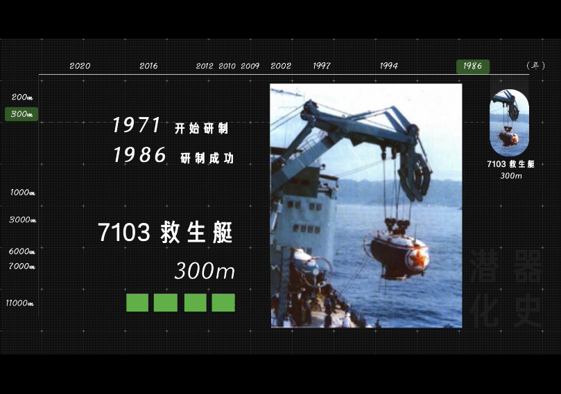 1970年,世界上首艘深潜救生艇“Mystic”号(神秘客号)下水试航,引起了各国军界的关注。同年,时任中国海军副司令员的周希汉将军对哈尔滨工程大学下达了要研发我国自主深潜救生艇。然而我国当时社会环境特殊,经济发展较差,在深海环境所需的特种设备和抗压材料方面的研究相对较少,再加上西方发达国家正对我国实施严格的科技封闭。在此背景下,以罗培林为带领的科研团队顶着重重困境,开启了长达15年的艰苦技术攻坚。1985年成功研制了7103救生艇。尽管其下潜深度为美国“Mystic”号1500米的五分之一,但这一成果意义非凡,实现了我国深潜技术从无到有的历史性突破,为后续深海科技发展奠定了坚实基础。