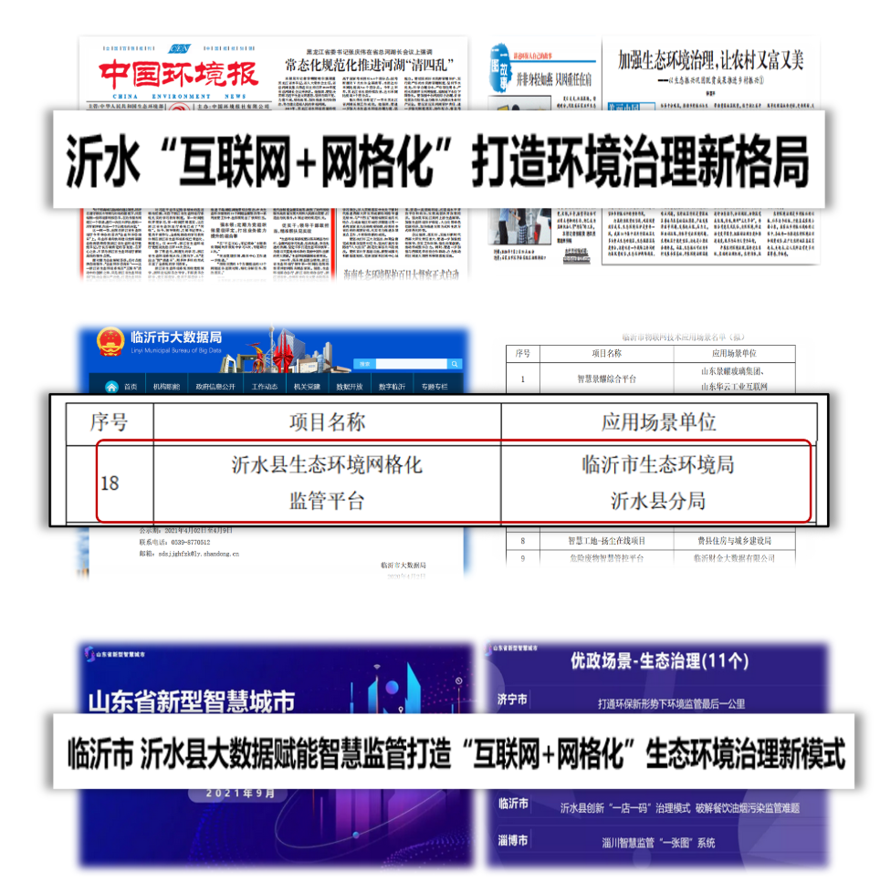 沂水县生态环境网格化监管平台通过整合资源、联动数据、深化应用,运用“互联网+网格化”生态环境治理新模式,打造精细治理、有效监管、部门协作的生态环境网格化监管平台,全力打好生态环境监管“组合拳”,构成“线上千里眼监控,线下网格员联动”的治理监管模式。